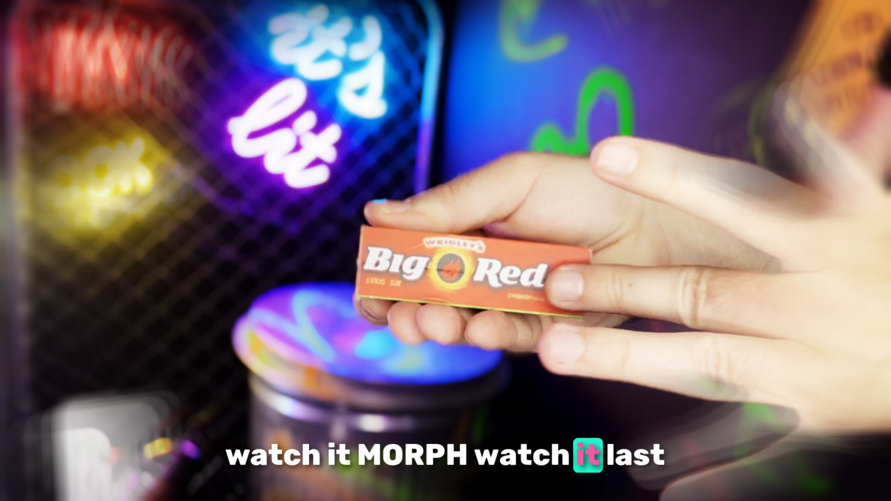You introduce a pack of Juicy Fruit gum from your pocket. Give it a shake and it visually changes to Big Red. Another shake, and then it changes to Double Mint Gum, and another makes it transform into a bright blue back of Winter Fresh. One last shake, and then the pack visually morphs into a large pack of Trident gum. One final rub of the pack of gum and you change it a final time into a pack of Orbit gum that can be immediately handed out for examination.