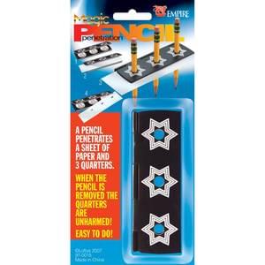 Three coins are placed in a holder and covered with a strip of paper. Three pencils are pushed through each hole, penetrating the paper and the coins. When the pencils are removed, the paper has three holes but the coins are undamaged. Examinable. Easy to perform. Provide your own pencils and quarters.